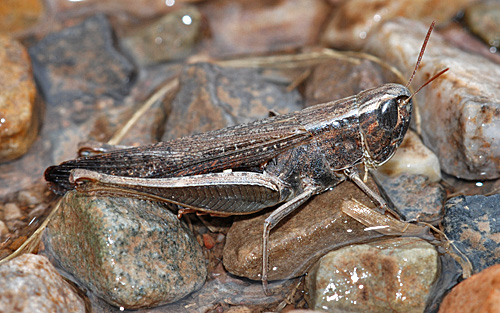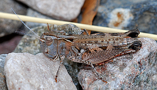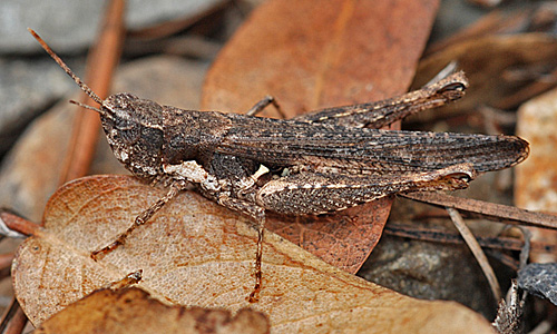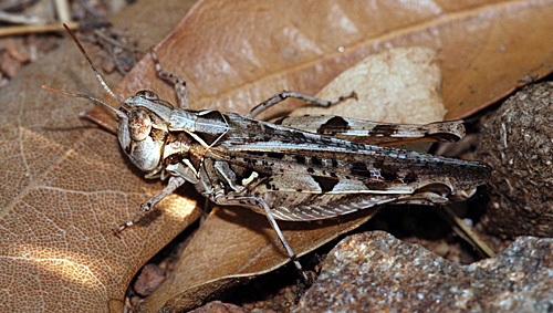 Traveler Grasshopper (Rhammatocerus viatorius). Coloration of fall and winter individuals seems to be limited to grays and browns. (27 August 2008)