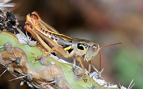 A male Humphrey’s Grasshopper (Barytettix humphreysii) perches on a cholla cactus (30 August 2008)