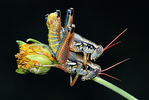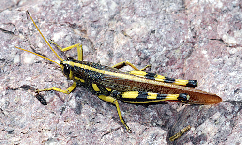 The Panther-spotted Grasshopper (Poecilotettix pantherinus) is one of the most attractive U.S. species. It was a couple of years before I found one in the yard. (4 August 2009)