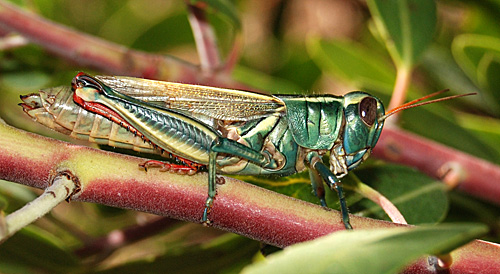 A green form of the White-lined Bird Grasshopper (Schistocerca albolineata). (21 October 2007).