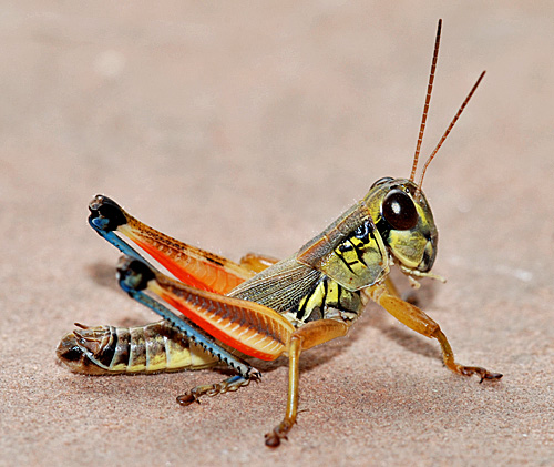 Differential Grasshopper (Melanoplus differentialis). This large, destructive species has a crisply defined herring bone pattern on the face of the hind femur. (18 October 2007)