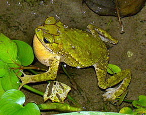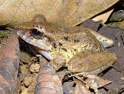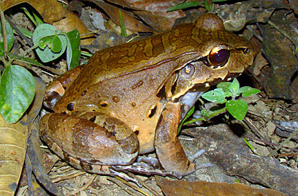Savage's Thin-toed Frog (Leptodactylus savagei) (formerly L. pentadactylus) is one of Costa Rica's largest amphibians. This one was on leaf litter in Secondary forest at Bosque del Rio Tigre (19 February 2009)
