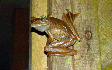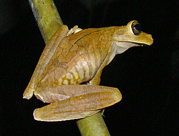The Gladiator Frog (Hypsiboas rosenbergi) is an especially large tree frog. These were on a building at Esquinas Rainforest Lodge (16 February 2009 above) and in secondary forest at Bosque del Rio Tigre (below)