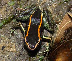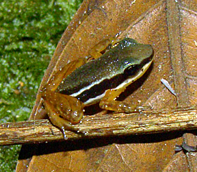 The non-poisonous Rainforest Rocket Frog (Silverstoneia flotator) on a stream at Esquinas Rainforest Lodge, (13 February 2009).