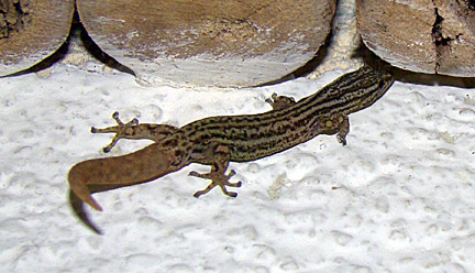 An Orange-headed gecko (Gonatodes albogularis) hunting bugs in the restaurant at Esquinas Rainforest Lodge (12 February 2009)