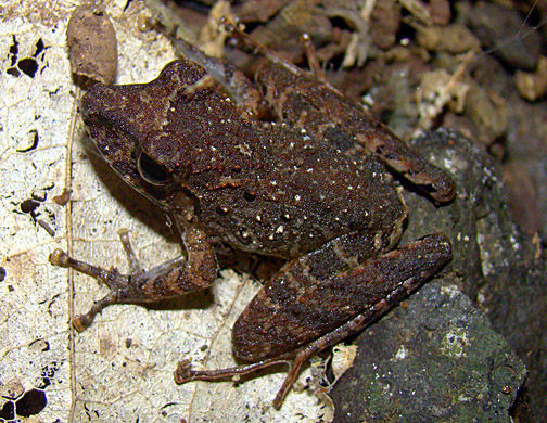 An unidentified frog, perhaps Craugastor stejnegerianus, on a narrow, shady stream, Bosque del Rio Tigre (20 February 2009)